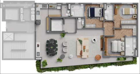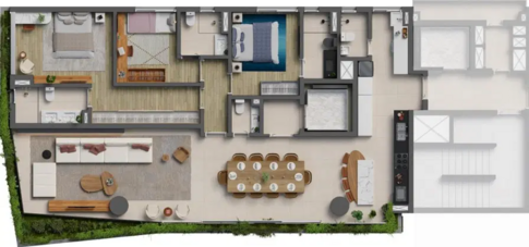 O 319 Padre João Manuel oferece diversas tipologias de residências, desde apartamentos com três suítes que variam de 141 m² a 272 m², incluindo unidades garden e duplex, até o PJM Single Living, que conta com studios compactos de 21 a 38 m² para quem busca praticidade sem abrir mão da elegância. As áreas comuns foram projetadas para proporcionar conforto e bem-estar, incluindo portaria blindada, hall social, salão de festas gourmet, espaço kids, playground, spa, sauna, fitness center, solarium, piscinas climatizadas com raia de 20 metros, piscina infantil, deck molhado e espaço para pets.